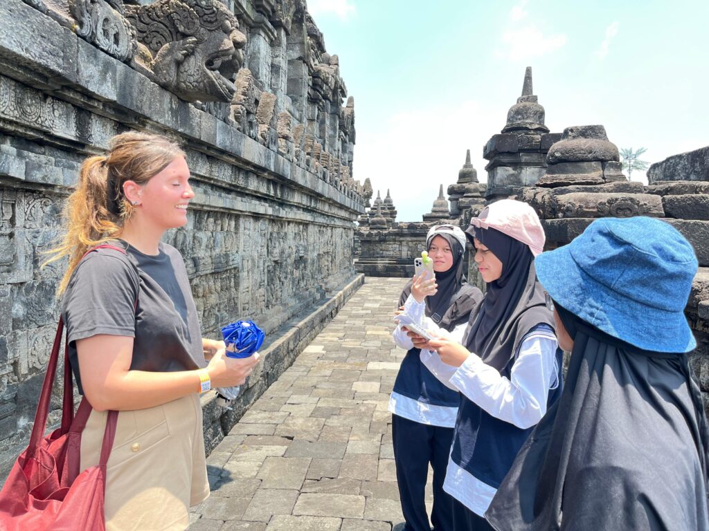 Kegiatan Hunting Turis di Candi Borobudur ini menjadi sarana meningkatkan kompetensi komunikasi bahasa Inggris. Pembelajaran dikemas secara menyenangkan dan kontekstual. Melalui pengalaman langsung berinteraksi dengan penutur asing, siswa tidak hanya belajar berbahasa Inggris, tetapi juga membangun karakter percaya diri, berani berbicara, dan terbuka terhadap keberagaman budaya dunia.