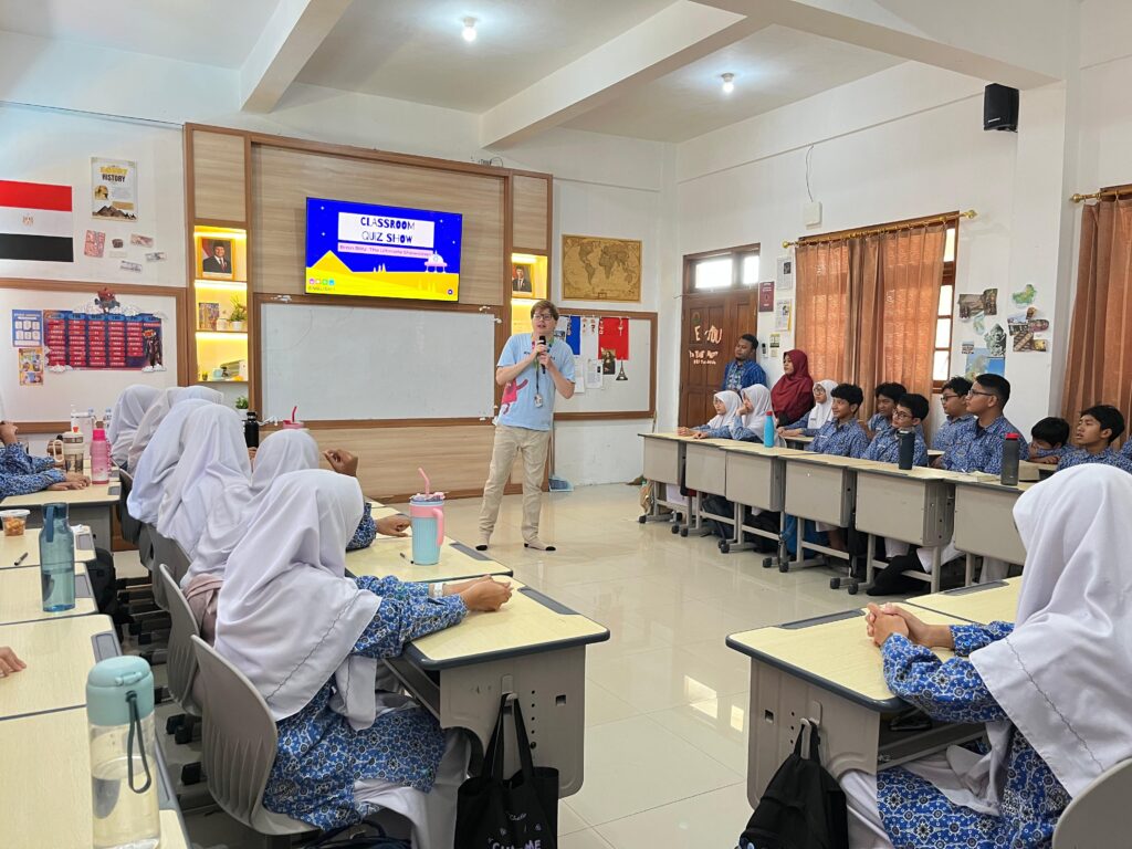 Sementara itu, Native Speaker, Benjamin Paul Ellis, menyampaikan apresiasinya terhadap siswa SMP Muhammadiyah PK. Ia berbagi pengalaman belajar dengan siswa kelas 8 dan 9 International Class Program (ICP) melalui berbagai aktivitas interaktif, mulai dari kuis hingga diskusi topik seputar geografi, matematika, dan sains.